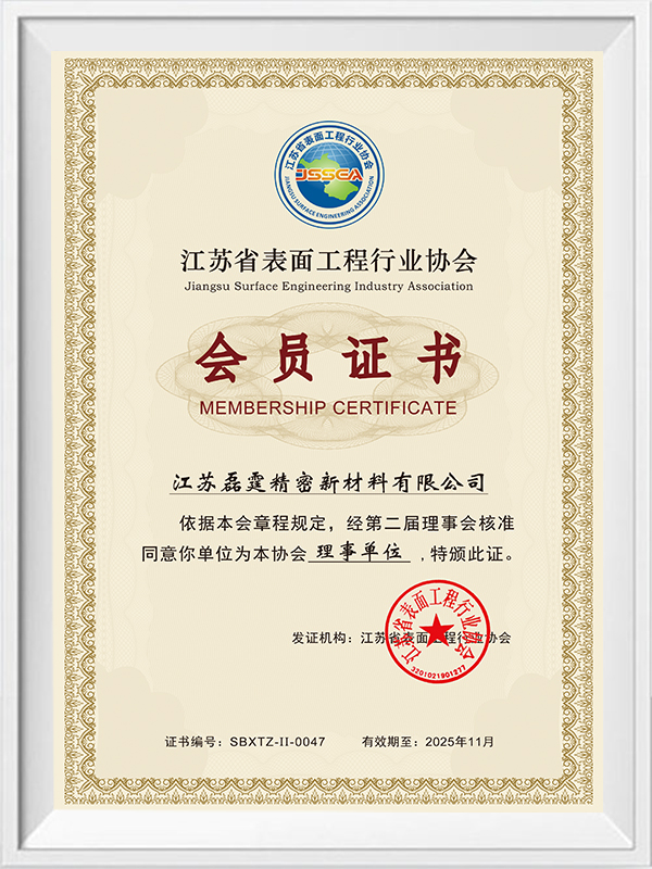 Jiangsu Surface Engineering Industry Association Membership Certificate